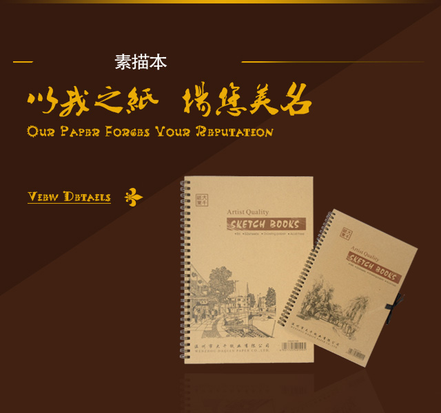 温州市大千纸业有限公司创建于1998年。因经营规模发展及对外贸易需要,公司于2016年4月份整体乔迁至上海。今后一切业务来往由上海然超实业有限公司经营。公司专业生产美术用纸(本),主要产品有素描,水粉,水彩等各种美术用纸及美术专业用速写本。产品不但在全国各地享有声誉、深受广大美术爱好者厚爱。还远